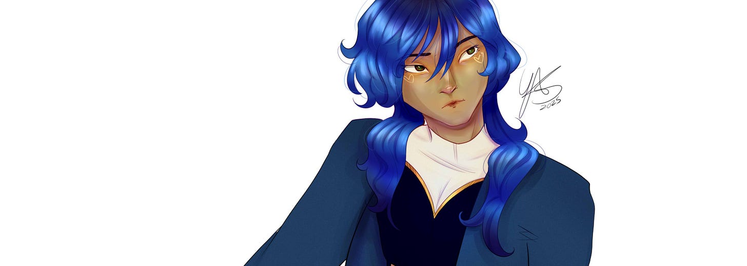 Hayato é um personagem importante para mim, ele sempre foi diferente dos meus outros OCs por ser queer-coded. Bem, hoje em dia ele realmente é queer, foi meu primeiro personagem bissexual, mesmo quando eu não entendia muito bem o que isso significava. Com ele, eu me abri para explorar diversas expressões de gênero e sexualidade, era meu ponto de escape para muitas coisas. Por causa disso, tive que defender ele muitas vezes do julgamento dos outros, algo que eu me orgulho até hoje. Ele pode ser diferente sim, mas ele merece respeito como qualquer outro personagem! No fim, isso se refletiu em como eu via as pessoas: todas dignas de respeito, mesmo que fossem diferentes de mim. No fim, a criação dele me levou à descobrir minha própria identidade como pessoa queer! Viva, Hayato! Que venham muitos outros anos, vou fazer alguma coisa grande pro seu décimo aniversário, prometo.